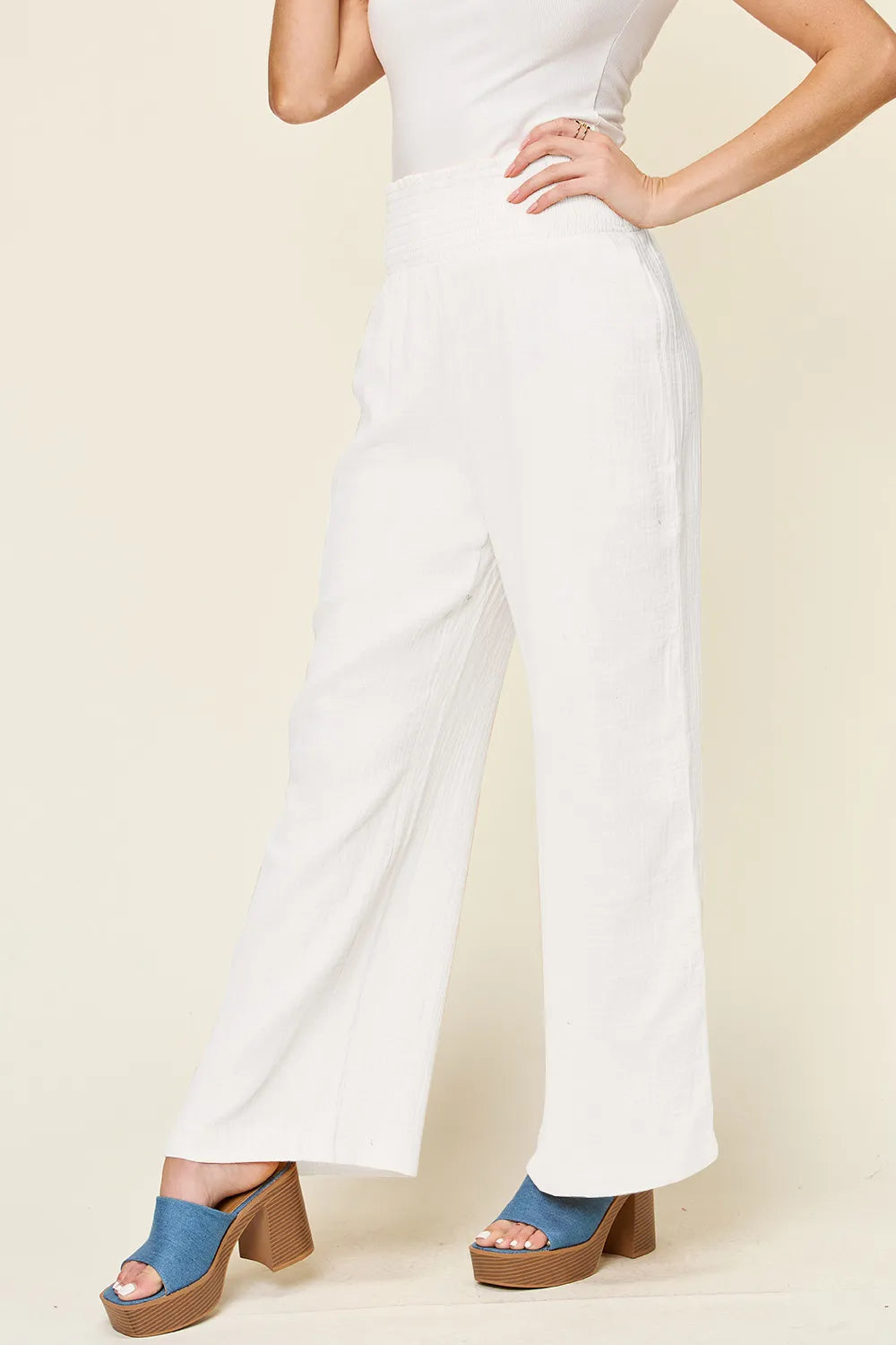 Inform when this item available Double Take Full Size Texture Smocked Waist Wide Leg Pants
