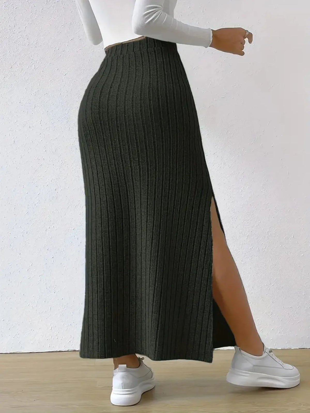 Inform when this item available High Waist Ribbed Knit Maxi Skirt