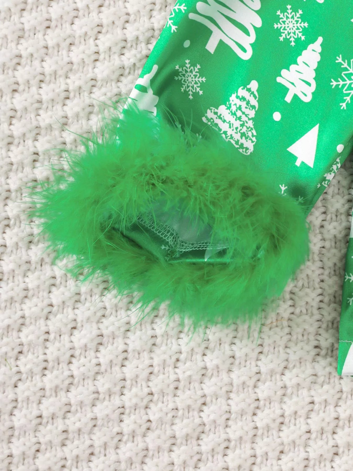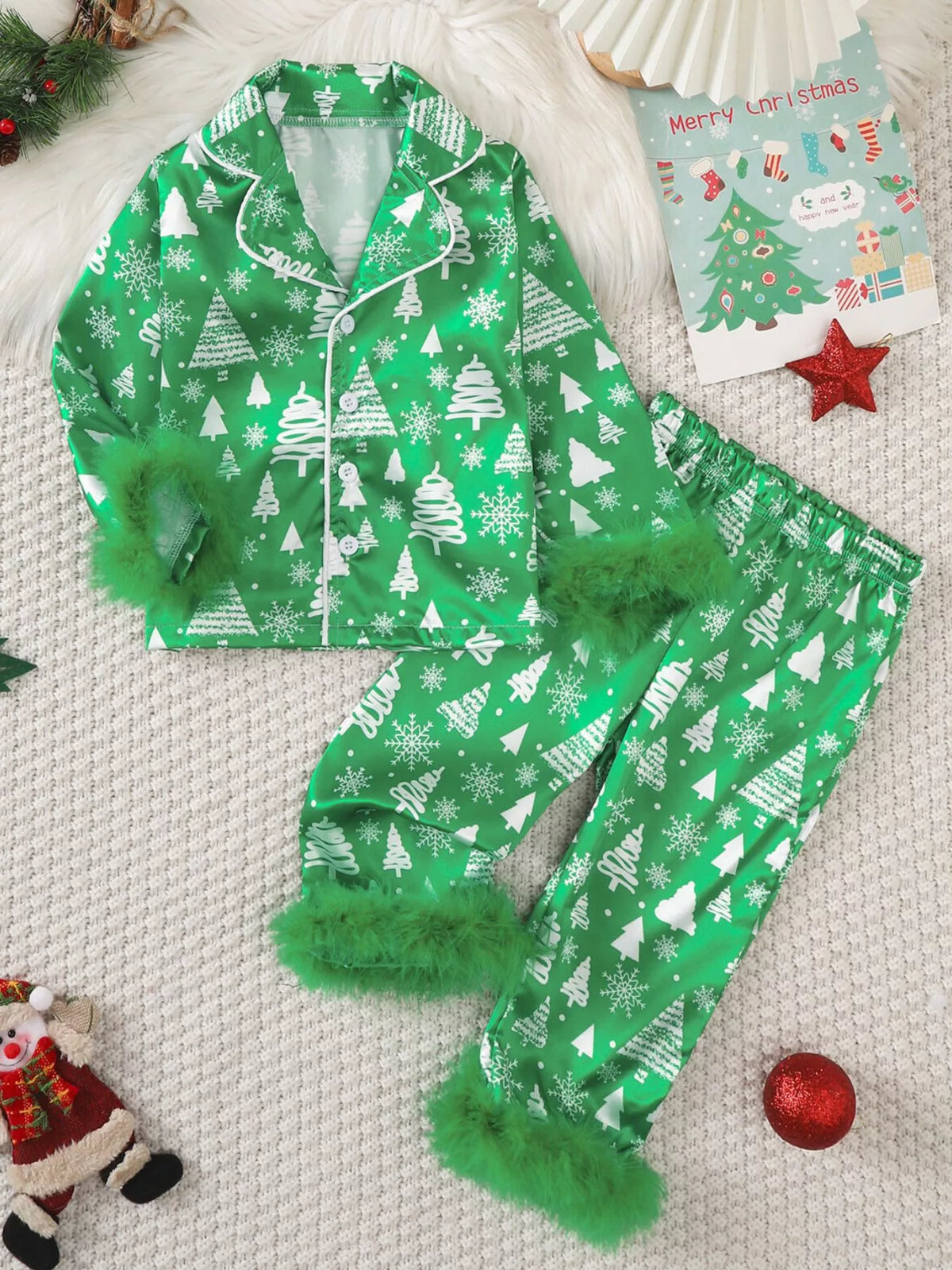 Inform when this item available Children's Christmas Tree Print Fluffy Cuff Pajama Set