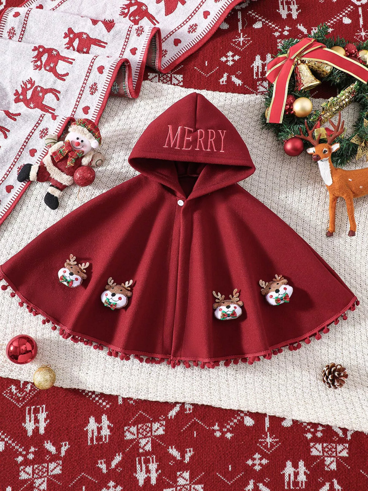 Inform when this item available Children's Reindeer Embroidered Christmas Cape Outerwear