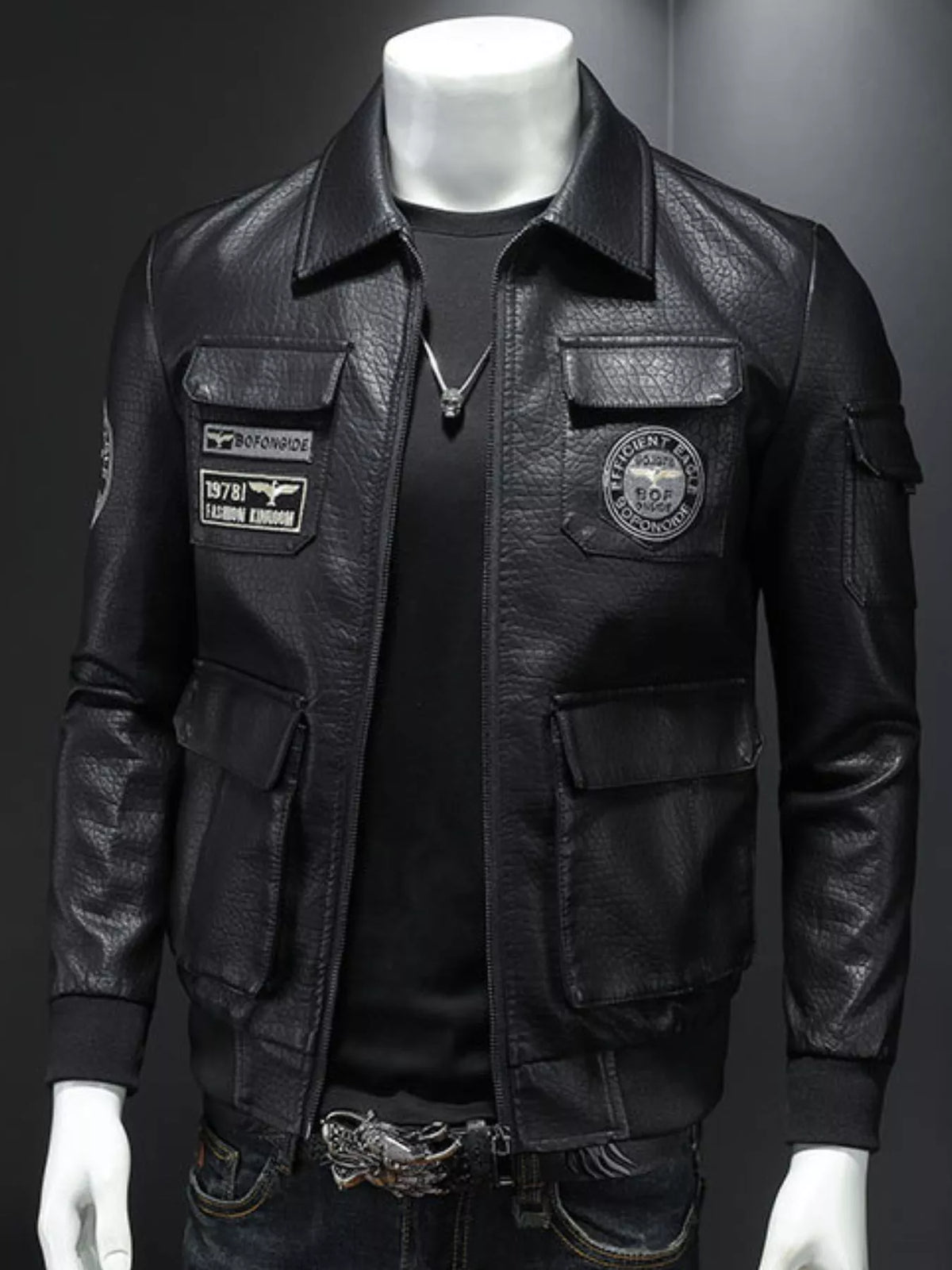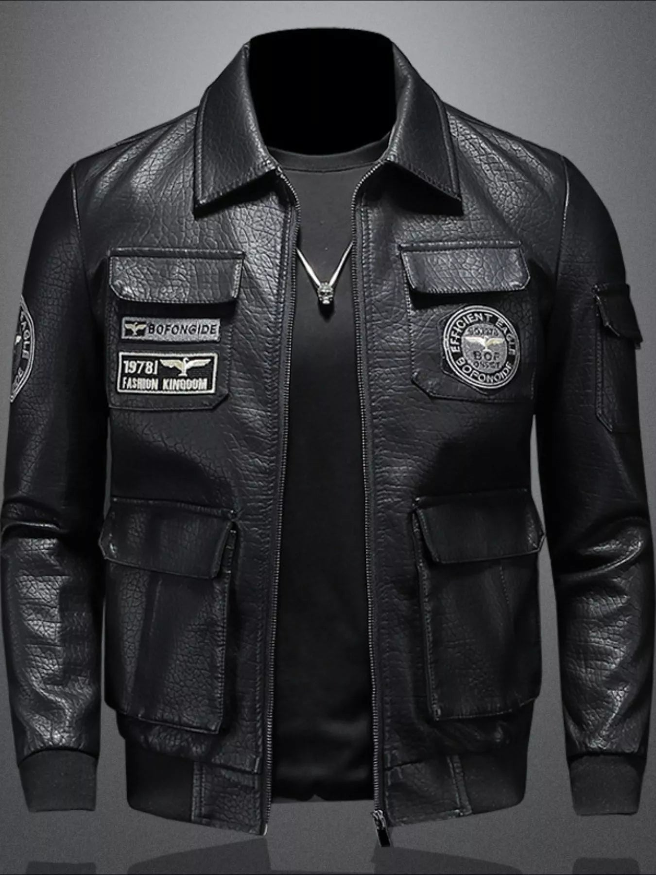 Inform when this item available Men's Plus Size Zip Up Leather Bomber Jacket