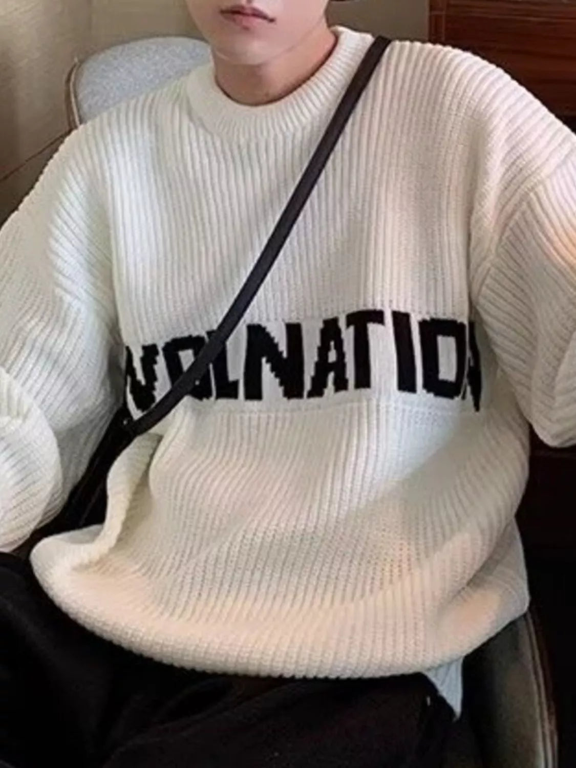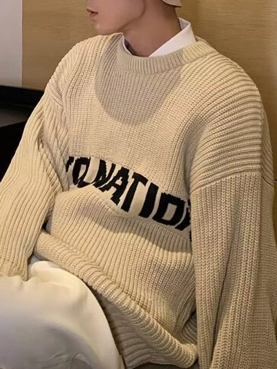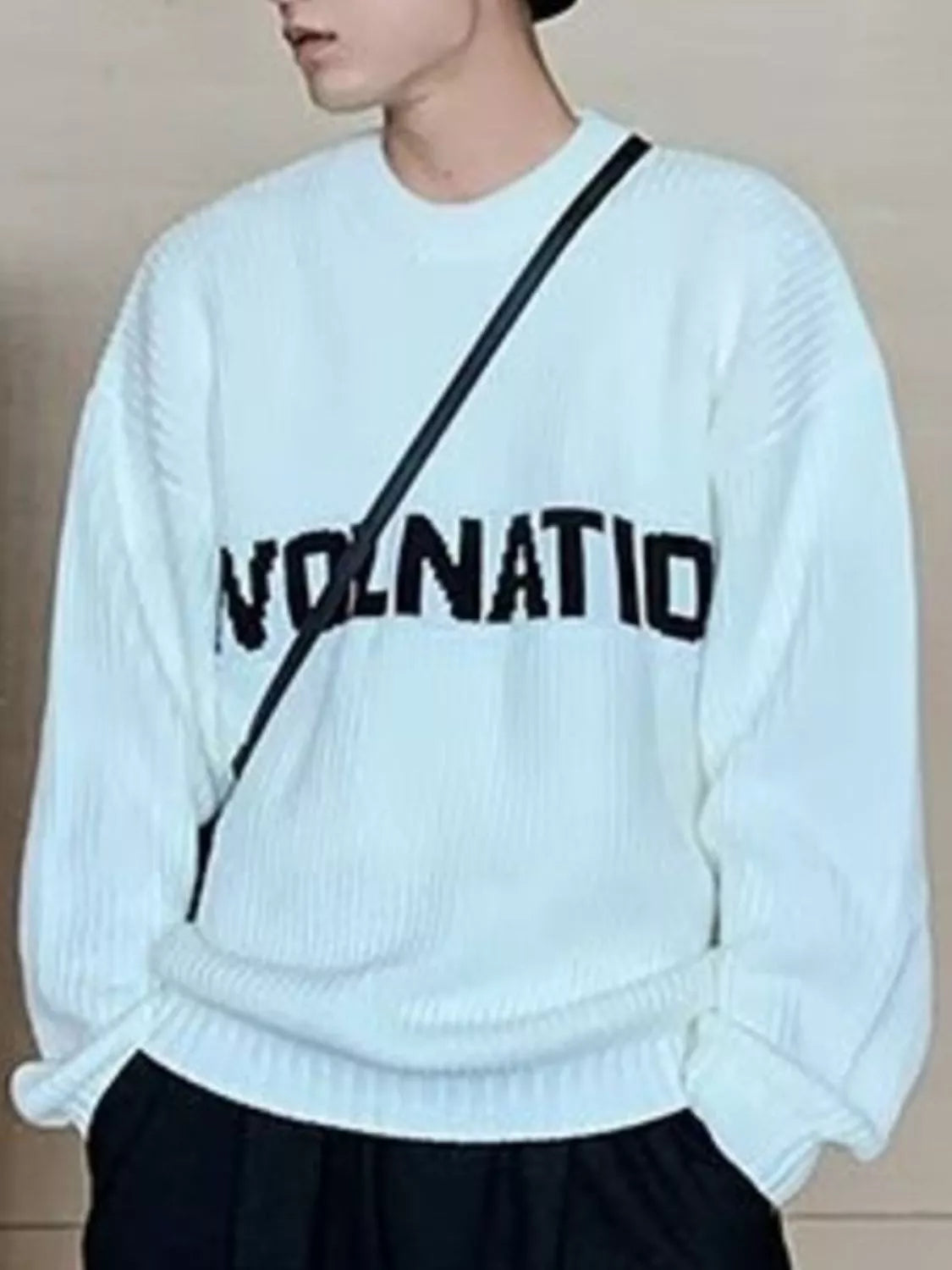 Inform when this item available Men's Letter Crew Neck Knitted Sweater