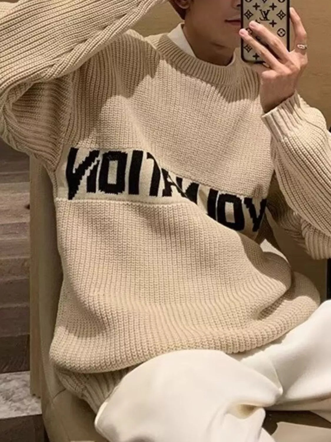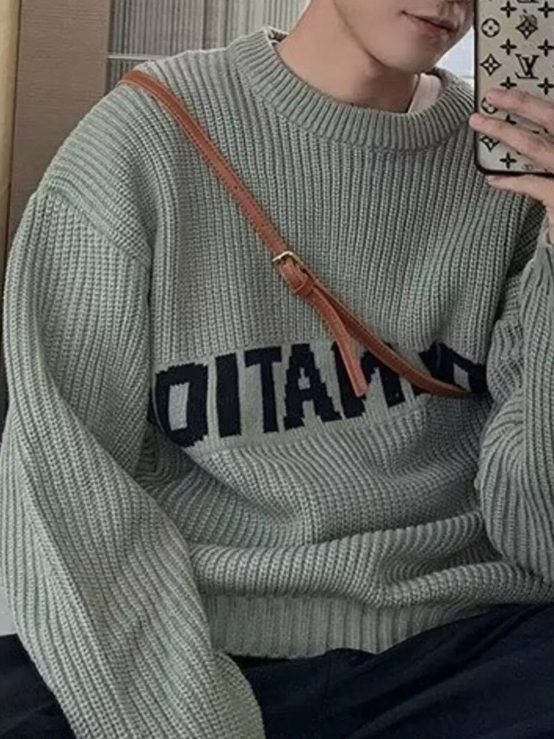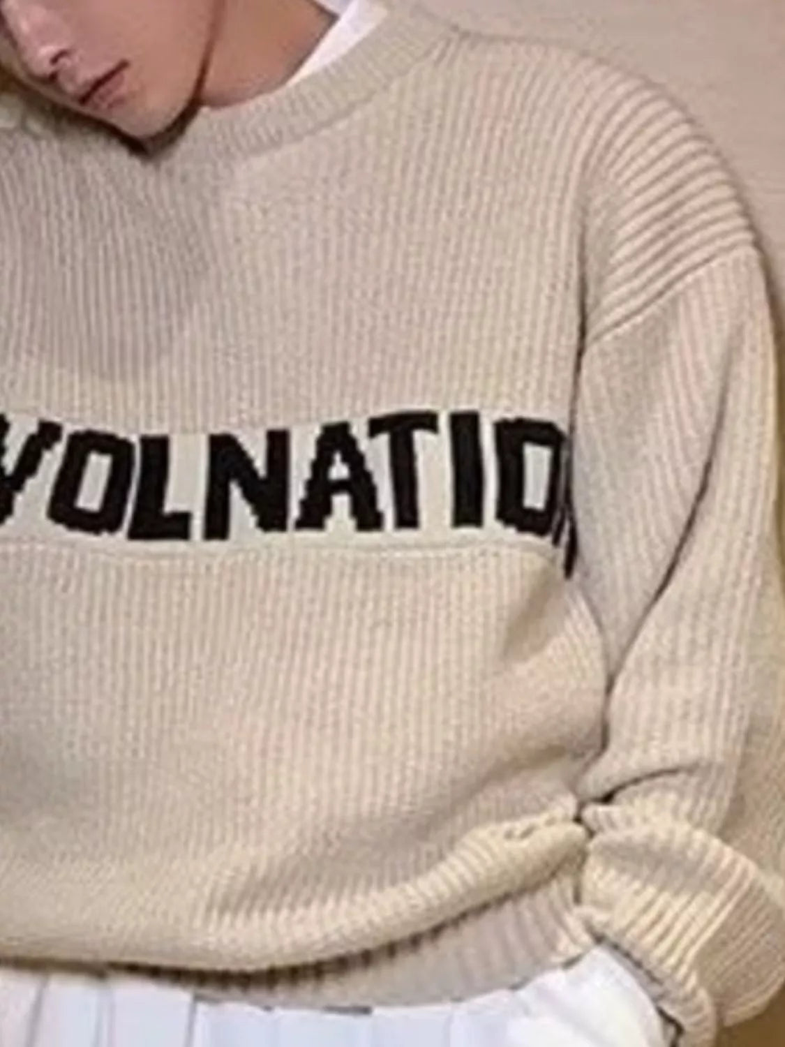 Inform when this item available Men's Letter Crew Neck Knitted Sweater
