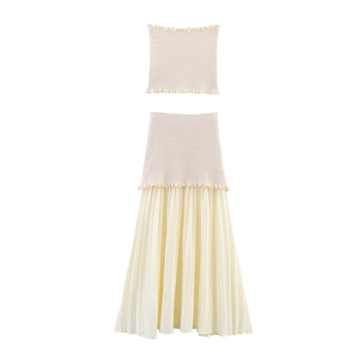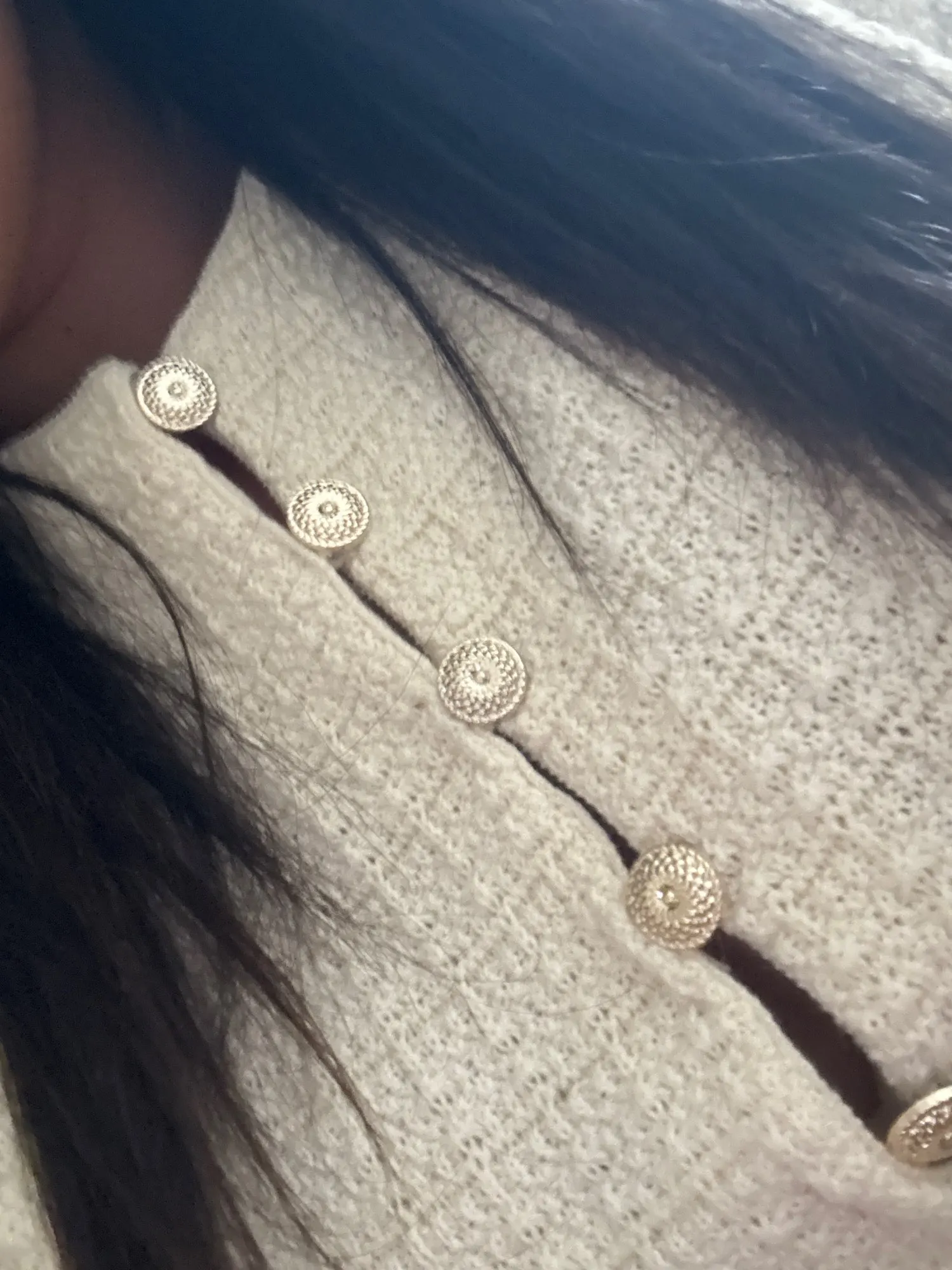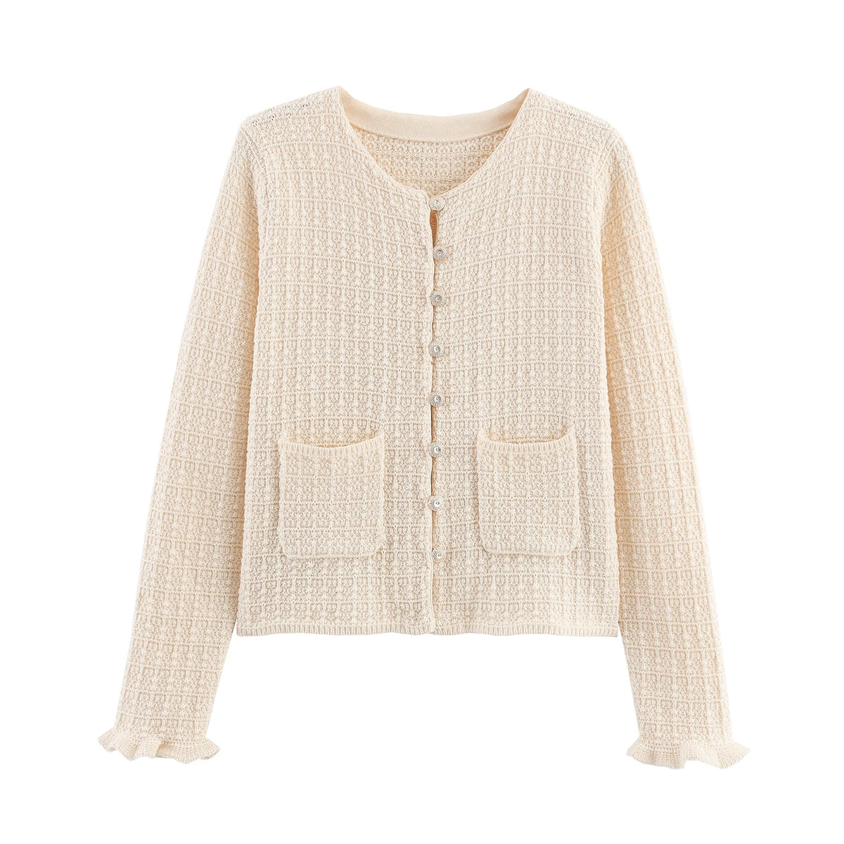 DEEABAE Autumn And Winter New Round Neck Buckle Decoration Gentle and Versatile Short Sleeve Knitted Cardigan Half Skirt Set