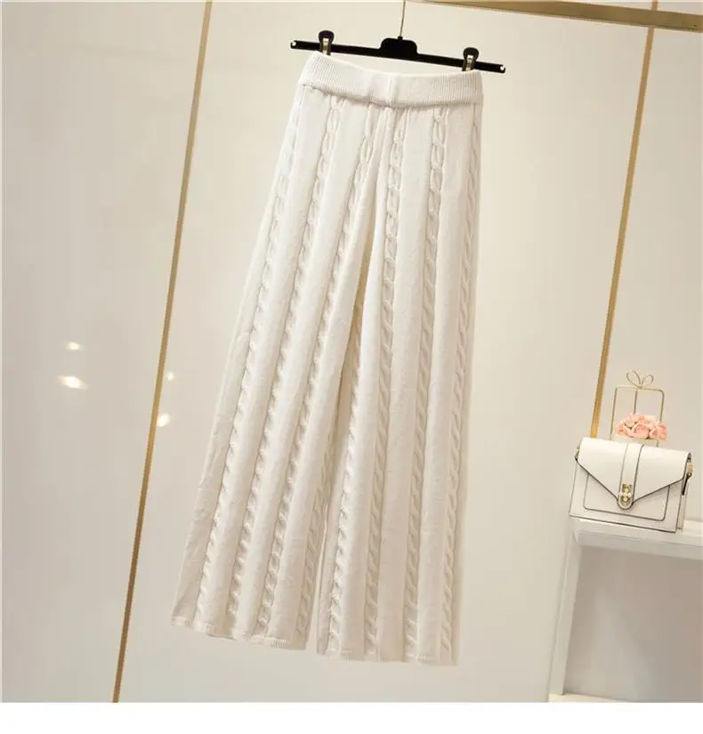 Women Sweater Suit Knitting 3 Piece Sets Cotton Vest Top Pullover Turtleneck Wide Leg Pants Tracksuit Winter Thick Outfits