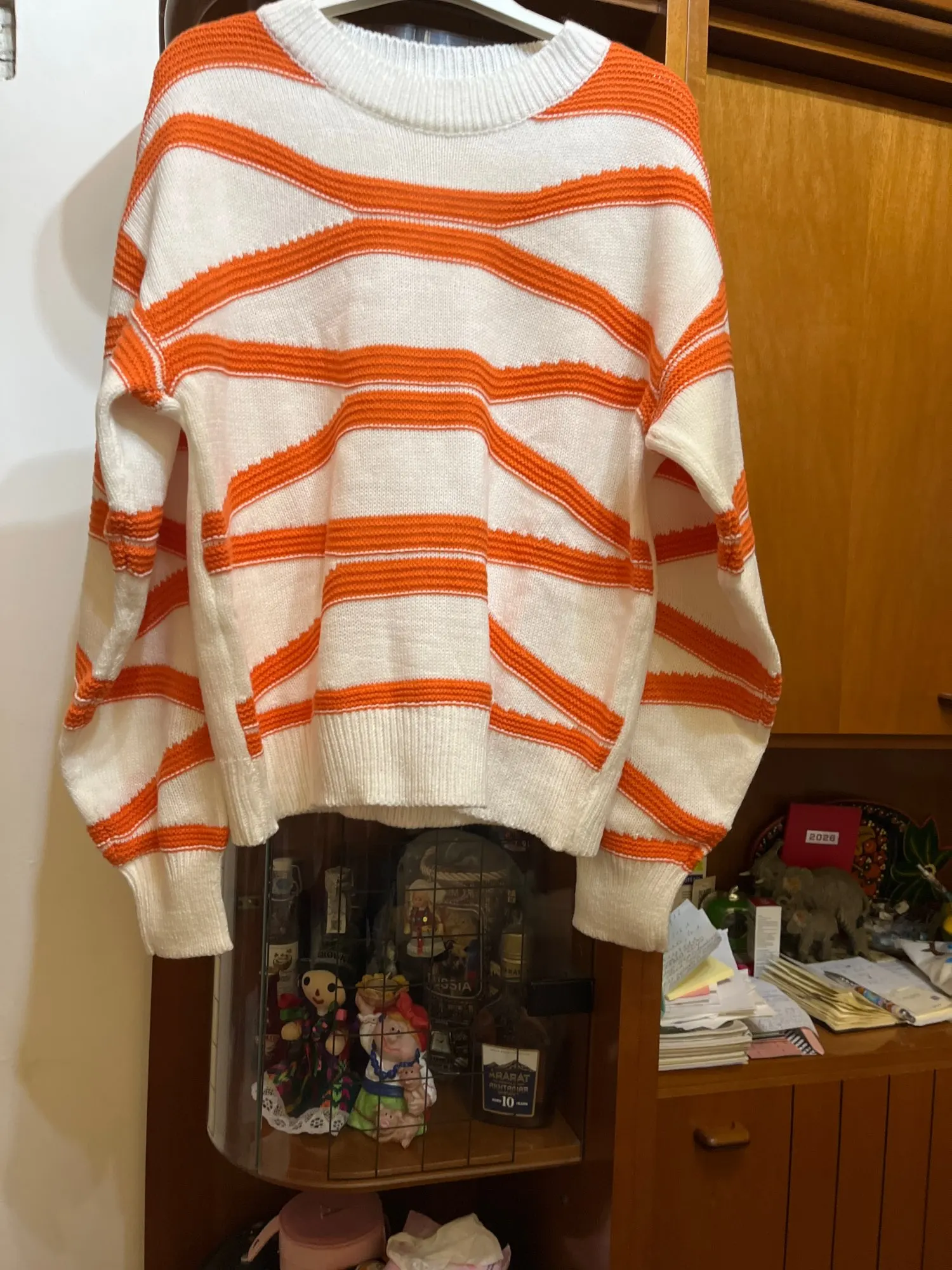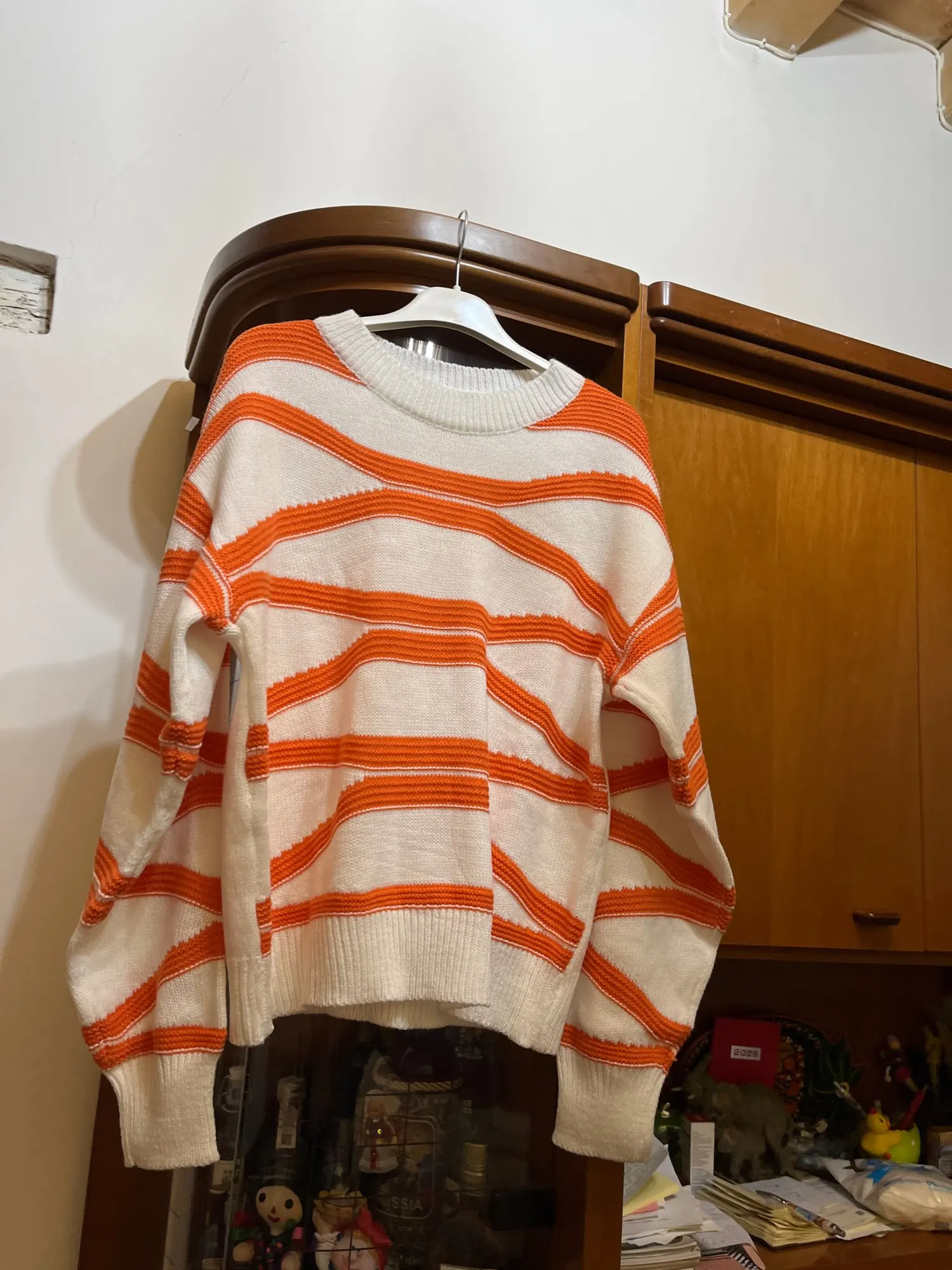 Fashion Contrast Color Striped Sweaters for Autumn Winter Casual Round Neck Lantern Long Sleeve Knitted Tops Women Clothes - Orange / L