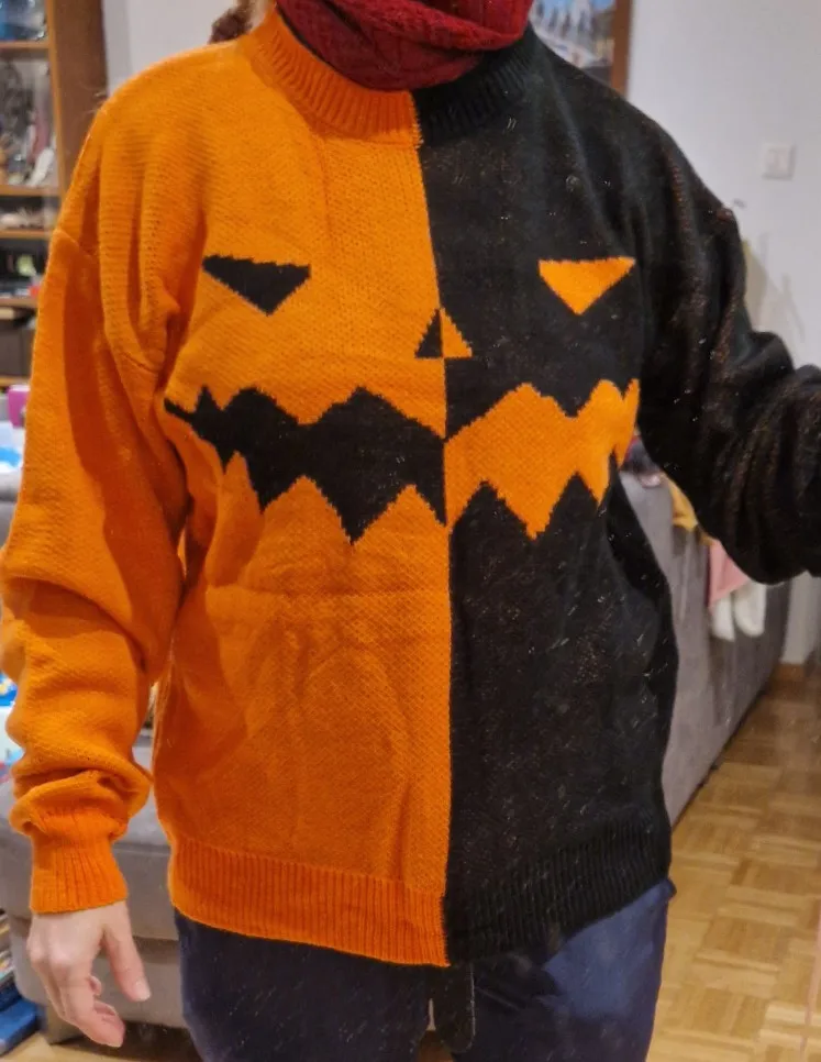 Halloween Women's Contrast Color Pumpkin Pattern Sweaters 2025 Autumn Winter Casual Round Neck Long Sleeve Knitted Pullover