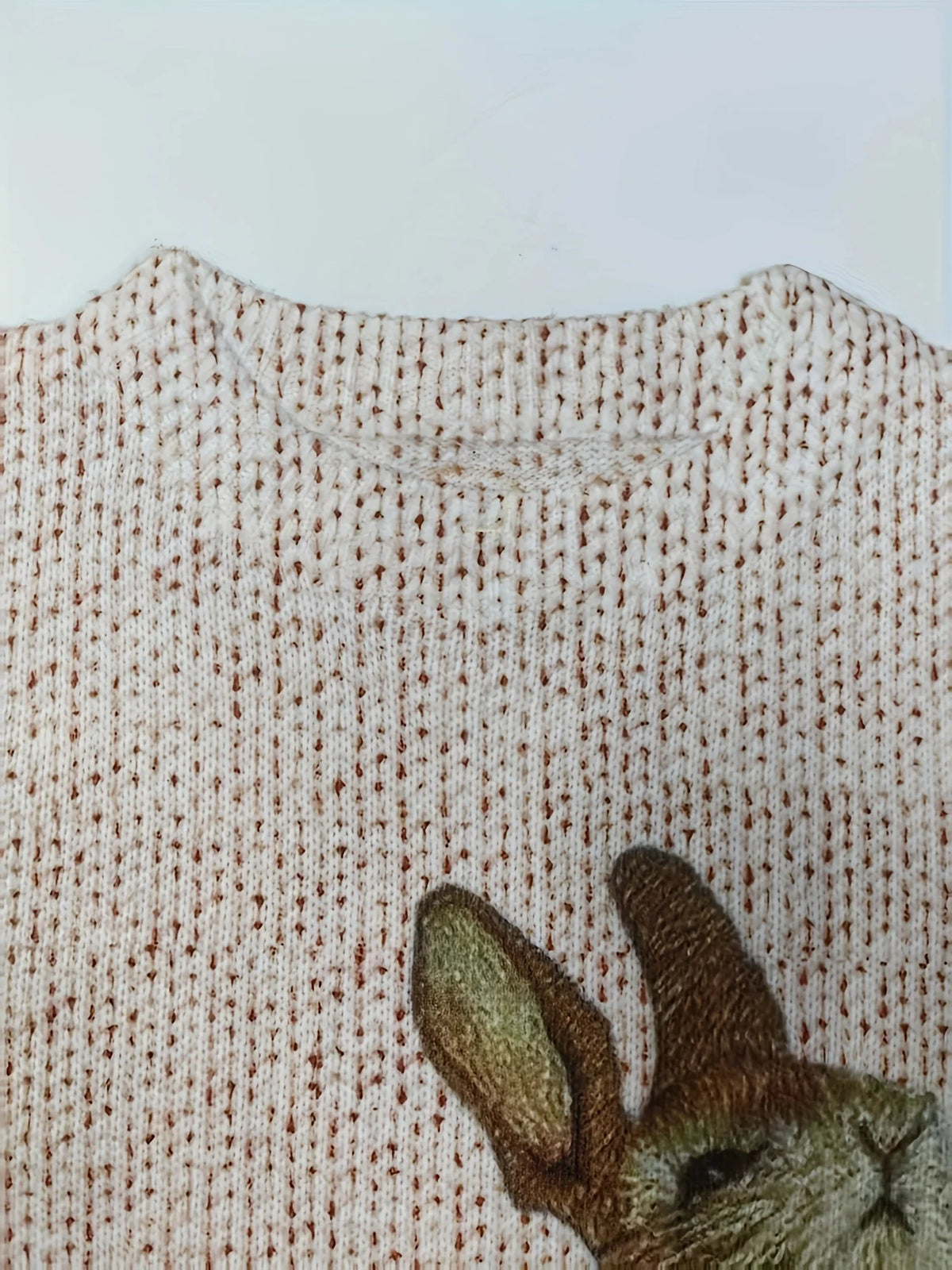 Ladies' autumn and winter printed round-neck long-sleeved knitted pullover - Animal print - suitable for daily casual wear